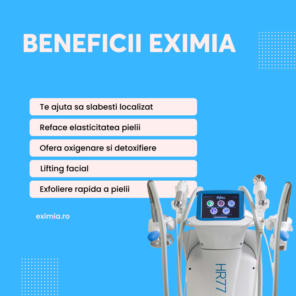 Eximia este inovația tehnologică de amploare care poate înlocui chirurgia estetică, cu terapii inovative ce stimulează procesele metabolismului uman pentru a elimina excesul de grăsime, ajutând totodată și la ameliorarea vergeturilor, la tratarea retenției de lichide și a lipsei de fermitate. Încă de la prima ședință se poate observa o scădere în centimetri pe zona lucrată și o îmbunătățire a aspectului pielii.